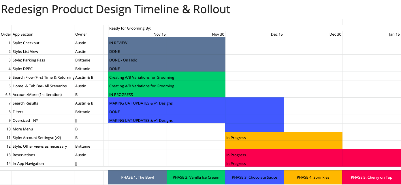 We needed to rollout this new design in chunks so we could test it before we jumped full in. It was important to get it out without waiting for the prefect design to uncover as many issues as soon as possible. Working with the Product Manager and Mobile Engineering Manager, we created a phased rollout.